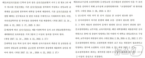 강원대 전임교원 신규 임용 지침 제11조와 24조.