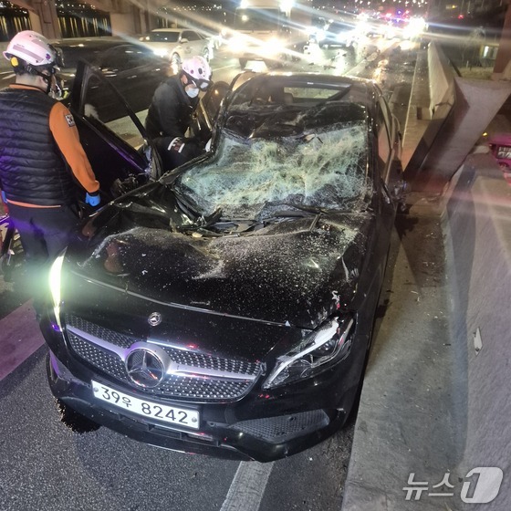 이 사고로 A 씨와 사고 차량이 충격한 벤츠 차량을 운전하던 40대 남성이 병원으로 이송됐다. 두 사람은 경상을 입은 것으로 파악됐다.
