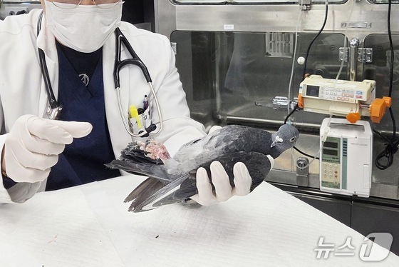 이 비둘기는 약 두 달 전 한 시민의 손에 구조돼 병원을 찾았다. 동물병원 원장 김모 씨에 따르면 당시 비둘기는 평소 동물병원에 고양이 진료를 보러 오던 보호자가 운영하는 카페 문으로 절뚝거리며 들어오더니 보호자 눈앞에서 그대로 쓰러졌다.