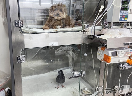 지난 5일 서울 송파구의 한 동물병원 입원실. 입원 치료를 받는 개와 고양이 사이 케이지 하나에 낯선 환자가 눈에 띄었다. 도심 길거리에서 흔히 볼 수 있는 비둘기였다.