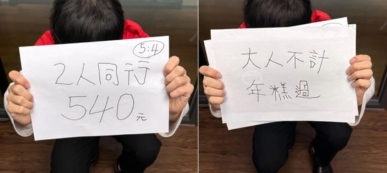 세 번째 종이에는 "2인 540원"이라는 문구가 적혀 있다. 이는 2명이 함께 방문할 경우 540대만 달러(약 2만 5000원)에 이용할 수 있다는 의미로, 해당 매장은 이를 기념 할인 행사로 내세웠다. 540 대만 달러라는 금액은 지난 8일 경기에서 대만이 한국을 5대4로 꺾었던 점수를 의미하는 것으로 추정된다.