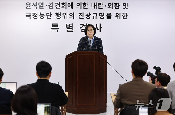 김지미 특검보가 11일 경기 과천 2차 종합특검 사무실에서 언론브리핑을 하고 있다. 2026.3.11 © 뉴스1 김도우 기자