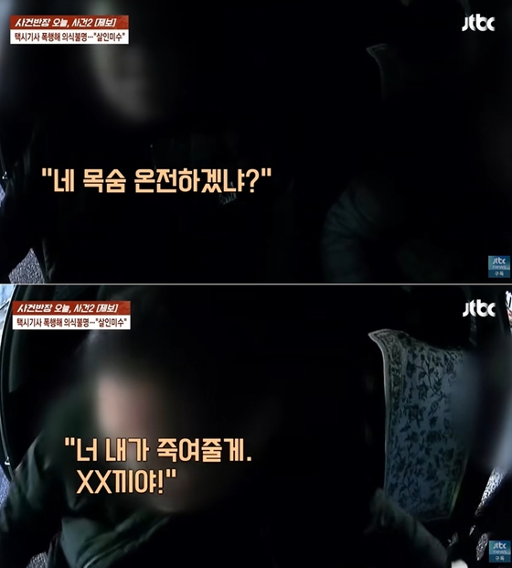 공개된 영상에는 50대 남성이 택시 기사에게 목적지를 묻자 갑자기 "네 목숨 온전하겠냐", "너 내가 죽여줄게", "너는 내가 죽일 거야"라고 위협하며 폭행하는 장면이 담겼다.