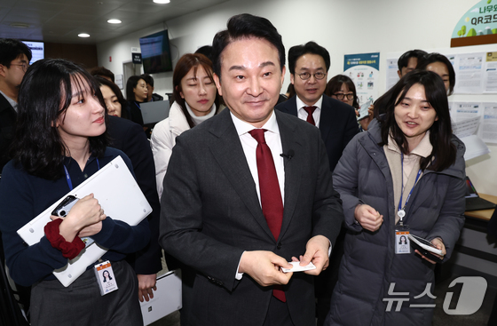 원희룡 전 국토교통부 장관이 지난해 2월 12일 오전 서울 여의도 국회 소통관에서 기자회견을 마치고 이동하고 있다. 2025.2.12 © 뉴스1 김민지 기자