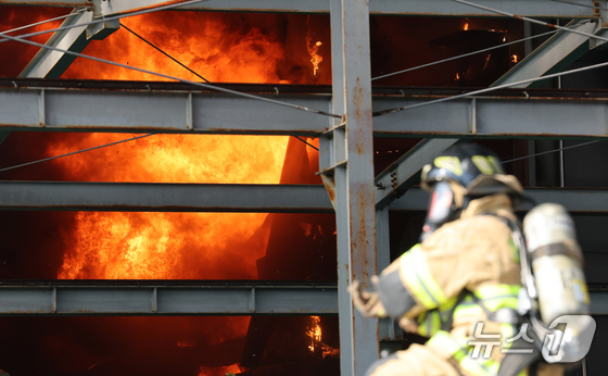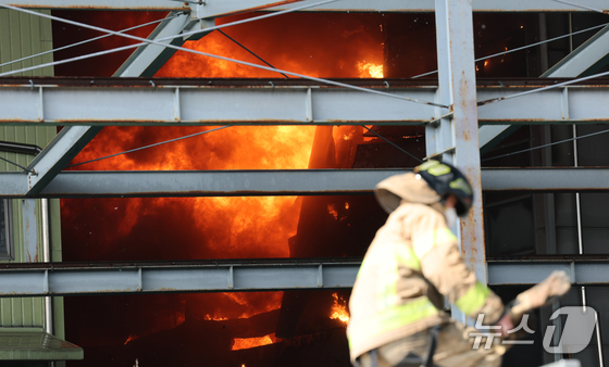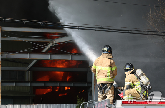 20일 오후 1시17분께 대전 대덕구 문평동의 한 공장에서 불이 나 소방대원이 불을 끄고 있다. 2026.3.20 © 뉴스1 김기태 기자