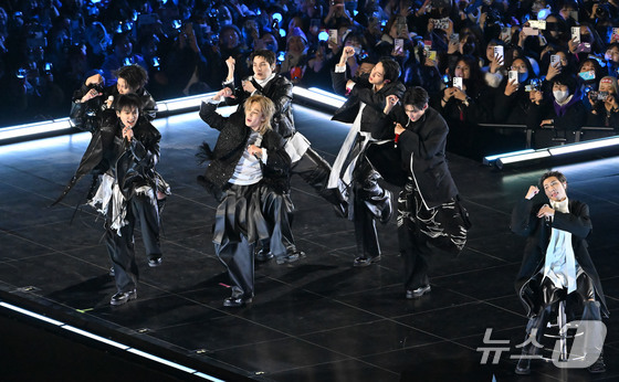 방탄소년단(BTS)이 21일 서울 광화문광장에서 'BTS 컴백 라이브: 아리랑' 발매 기념 컴백 공연을 하고 있다. 2026.3.21 © 뉴스1 사진공동취재단