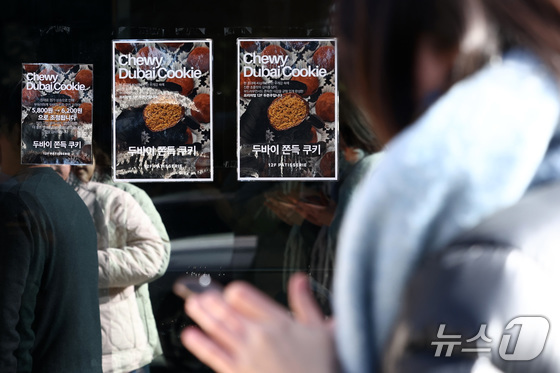 '두바이 쫀득 쿠키(두쫀쿠)' 열풍이 계속되는 20일 오후 서울 종로구 한 제과점에서 시민들이 두쫀쿠를 구매하기 위해 줄을 서 있다. 2026.1.20 © 뉴스1 최지환 기자