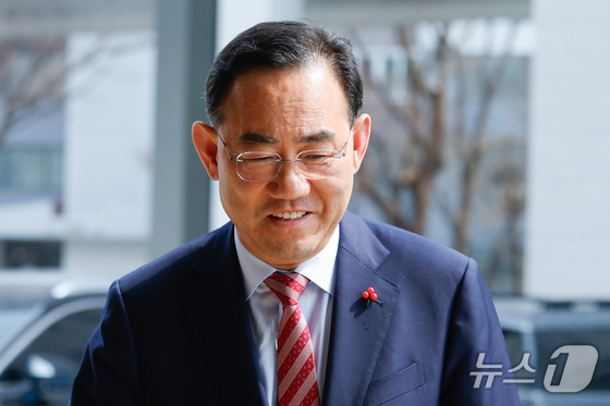 주호영 국민의힘 의원이 27일 오후 서울 양천구 남부지방법원에서 열린 6·3 지방선거 대구시장 후보 공천배제 결정 효력정지 가처분 심문기일에 출석하고 있다. 2026.3.27 © 뉴스1 안은나 기자