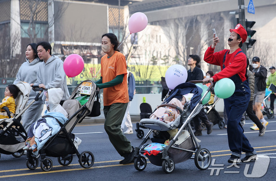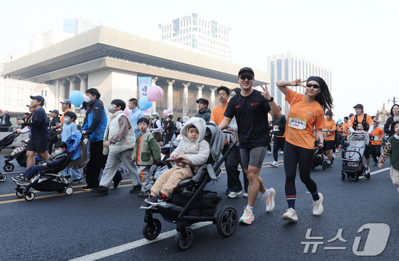 저출생 극복 메시지를 담아 가족이 함께 걷고 뛰는 '서울 유아차 런'이 28일 서울 종로구 광화문광장에서 개최됐다.