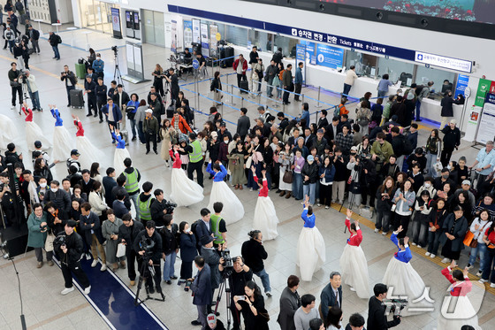 1일 오후 서울역에서 문화체육관광부 ‘문화가 있는 날’ 확대 기념행사가 열리고 있다. 기존 월 1회 운영되던 ‘문화가 있는 날’은 매주로 확대됐다. 2026.4.1 © 뉴스1 이종수 인턴기자