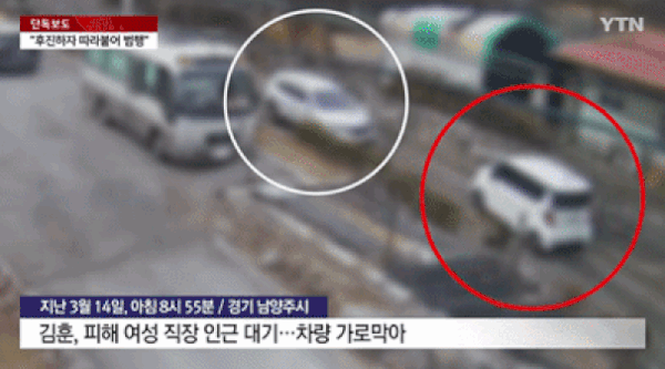 YTN이 공개한 영상에는 범행 직전 긴박했던 순간이 고스란히 담겼다. 화면에는 차 한 대만 겨우 지날 수 있는 좁은 도로에서 SUV와 경차가 마주 선 장면이 포착됐다.