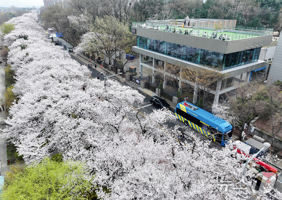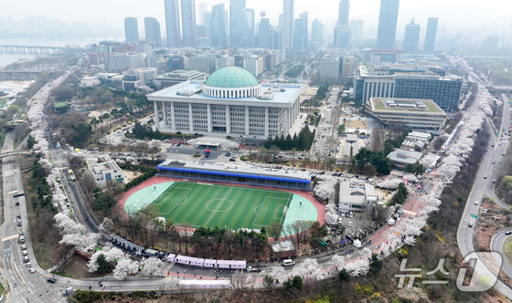 '여의도 봄꽃축제'가 시작된 3일 서울 여의서로 일대에 벚꽃이 만개해 있다. 2026.4.3 © 뉴스1 최지환 기자