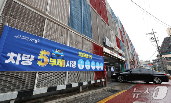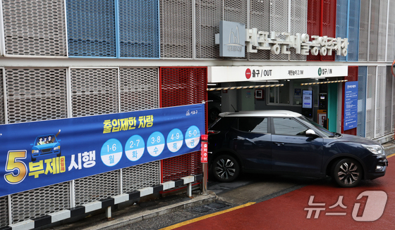 6일 서울 한 공영주차장에 5부제 시행을 알리는 안내문이 게시되어 있다. 2026.4.6 © 뉴스1 최지환 기자