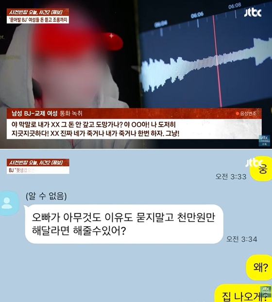 피해자들이 의심하기 시작하자 BJ는 통화에서 "야 막말로 내가 XX 그 돈 안 갚고 도망가냐?", "나 도저히 지긋지긋하다! XX 진짜 네가 죽거나 내가 죽거나 한번 하자. 그냥" 등 협박성 발언을 쏟아냈다.