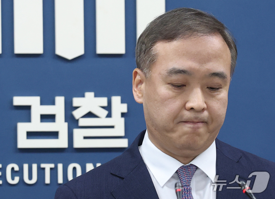 안동건 서울중앙지검 제1차장검사가 22일 서초구 서울고등검찰청 브리핑룸에서 감사원 고위공무원 뇌물수수 사건 처분 관련 브리핑을 하고 있다. 2026.4.22 © 뉴스1 오대일 기자