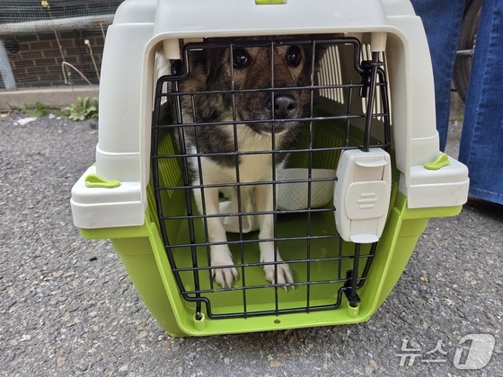 모견 복순이(암컷, 3살 추정)는 민간단체 어답미코리안레스큐에서 보호하며 입양을 진행할 예정이다. © 뉴스1 한송아 기자