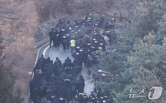 고위공직자범죄수사처(공수처)가 윤석열 대통령 2차 체포영장 집행에 나선 지난 해 1월 15일 오전 서울 용산구 한남동 대통령 관저로 공수처 관계자 및 경찰이 진입하고 있다. 2025.1.15 © 뉴스1 오대일 기자
