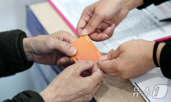 정부의 고유가 피해지원금 1차 지급 신청일인 27일 서울 종로구 사직동주민센터에서 한 시민이 고유가 피해지원금을 신청하고 있다. 고유가 피해지원금은 소득 하위 70%를 대상으로 1인당 10만~60만원까지 차등 지급된다. 지급 방식은 신용·체크카드, 선불카드, 지역사랑상품권 중 선택할 수 있으며 신청 첫 주는 혼잡 방지를 위해 출생연도 끝자리를 기준으로 하는 '요일제'가 적용될 예정이다. 2026.4.27 © 뉴스1 임세영 기자