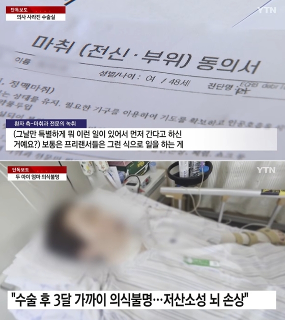 마취과·집도의가 없는 수술실에서 홀로 방치된 40대 여성이 마취에서 깨어나지 못해 3개월째 의식불명 상태에 빠진 것으로 전해졌다.
