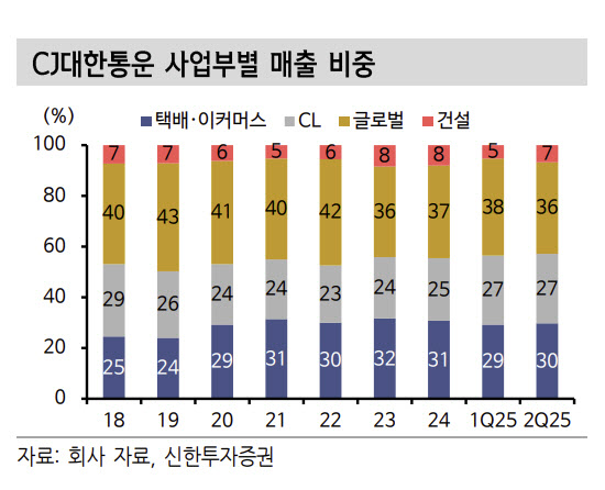 최민기 신한투자증권 연구원은 “택배는 소비 심리 회복과 풀필먼트 성장, 추석 연휴 전 9월 물량 효과로 물동량 증가하며 외형과 수익성이 모두 회복됐다”며 “CL은 수출입 항만 물동량 위축에도 W&D(3자 물류)와 트럭킹 연계 물량 강세로 외형이 성장하고 상반기 수익성 부진 요인이던 대형 수주 원가 부담도 개선됐다”고 밝혔다. 이어 “글로벌은 인도·동남아가 견조하나 해상운임 급락에 따른 포워딩 약세와 미국향 배터리 프로젝트 물류 기저 부담으로 전년 대비 부진했다”고 덧붙였다.