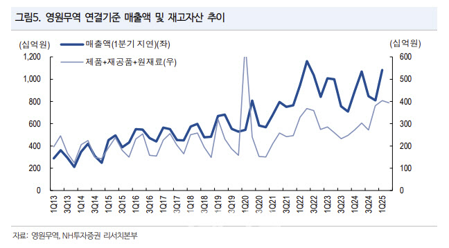 정지윤 연구원은 “8월부터 미국 관세 부담이 확대되며 글로벌 OEM 경쟁사들의 매출이 역성장세를 보이고 있지만, 영원무역은 노스페이스·아크테릭스 등 주요 바이어의 글로벌 재고 확충에 따라 홀로 성장세를 이어가고 있다”며 “방글라데시·베트남 생산라인 확충으로 인건비 부담이 늘었으나, 하이엔드 아웃도어 브랜드 중심의 믹스 개선으로 이를 상쇄하고 있다”고 분석했다.