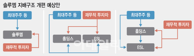 내부 문건에 따르면 솔루엠은 올해 2월 이전부터 ESL 사업부문의 실사 작업을 진행했고, 당시 미래에셋증권(006800)과 RCPS 발행을 위한 업무 협약을 맺었다. 지배구조 개편을 위해 △투자유치 △ESL 사업부문 인적분할 △최대주주 지분 현물 출자 △공개매수를 통한 지분 획득 등의 구조를 설계했다.