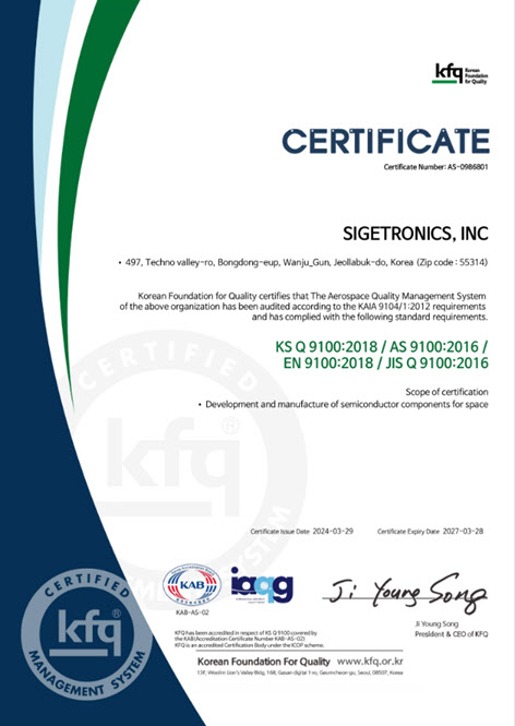 회사는 본 개발 과정에서 항공우주 품질경영 인증 ‘KS Q 9100’을 취득하며 우주용 고신뢰성 전자부품 생산 능력을 공식적으로 인정받았다. 또한 이번 기술은 시지트로닉스가 미사일 신관용 고출력 스위칭 소자(MCT)를 양산해오며 축적한 방산 전력반도체 기술을 기반으로 개발됐다.