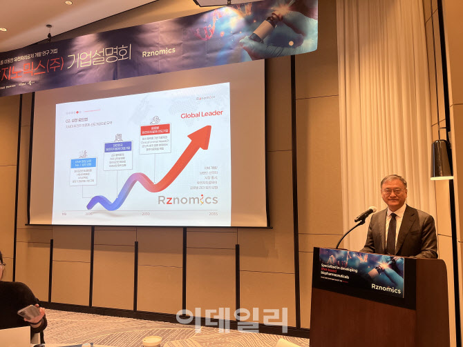 이성욱 알지노믹스 대표가 3일 서울 여의도에서 기업공개(IPO) 설명회를 열고 코스닥 상장을 통한 성장 전략과 비전을 발표하고 있다.(사진=알지노믹스)