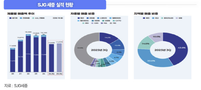 특히 하이브리드차 배기시스템 부품 공급 확대가 핵심이라고 강조했다. 이 연구원은 “고객사 하이브리드 차량 판매 전략에 맞춰 배기 시스템 부문의 매출과 영업이익이 더욱 확대될 것”이라며 “해외법인은 판가·환차익·원가절감 효과가 더해지며 영업이익 기여도가 커지고 있다”고 분석했다.