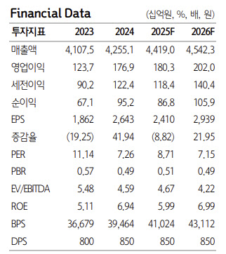밸류에이션 측면에서는 방어력이 있다는 평가다. 심 연구원은 “단기 실적 모멘텀은 제한적이지만, 현 주가는 12개월 선행 주가수익비율(PER) 7배 수준으로 매력적인 밸류에이션을 제공한다”고 짚었다.
