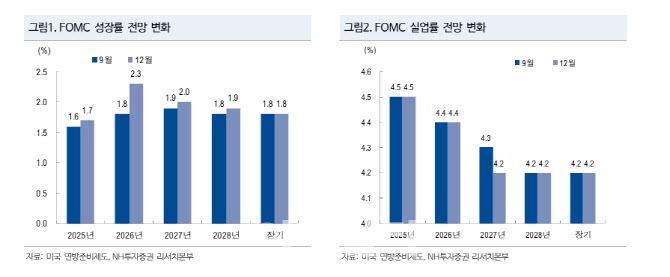 나 연구원은 “주식시장 관점에서 2026년 경기 모멘텀 개선 가능성에 초점을 둘 필요가 있다”며 “점도표에서 2026년 미국 성장률 전망이 0.5%포인트 상향 조정된 점은 위험자산에 우호적”이라고 분석했다.