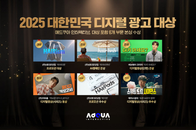 이외에도 떨어진 머리카락을 청소하는 탈모인에 대한 위로와 응원의 메시지를 전하며 커뮤니티 활성화에 기여한 ▲대다모닷컴의 ‘헤어팟(HairPods)’ 캠페인이 프로모션 부문 우수상을 차지하는 등 애드쿠아는 총 6관왕에 오르게 됐다. 이로써 애드쿠아는 다양한 산업군을 아우르는 캠페인 성공을 통해 소비자 통찰력과 통합 마케팅 역량을 다시 한번 확인시켰으며, 특히 지난해에 이어 올해 역시 AI 기반 캠페인이 수상작에 포함되면서 독보적인 AI 크리에이티브 역량도 지속적으로 증명하고 있다.