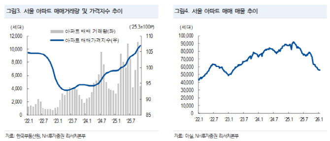 양도소득세는 다주택자 중과 유예가 5월 9일 종료될 것으로 봤다. 유예가 끝나면 조정대상지역에서 2주택자는 20%포인트, 3주택 이상은 30%포인트의 중과세율이 적용될 수 있어 3주택 이상 보유자는 최고 82.5%(지방소득세 포함) 수준의 실효세율이 가능하다는 설명이다. 이 연구원은 서울 전역이 규제지역으로 지정된 만큼 유예 종료 전에 서울 다주택자의 매도 물량이 집중될 가능성도 제기했다.