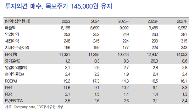 그는 “기존점 매출은 전년과 유사한 수준에 머물겠지만, 비수익 점포 정리에 따른 수익성 개선 효과와 고정비 효율화, 연결 종속회사 실적 증가가 이익 성장을 뒷받침할 것”이라며 “2024년 12월 계엄 사태에 따른 기저 효과와 통상임금 판결에 따른 1회성 비용 영향도 함께 고려할 필요가 있다”고 설명했다.
