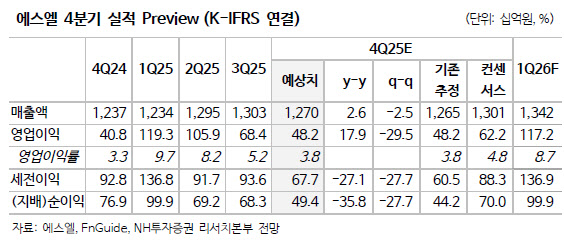 지난해 4분기 실적 역시 안정적인 성장세가 예상된다고 내다봤다. NH투자증권은 에스엘의 4분기 매출액을 1조 2697억원, 영업이익을 482억원으로 각각 전년 대비 2.6%, 17.9% 증가할 것으로 추정했다.