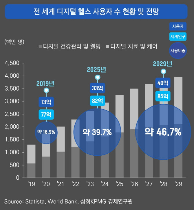 글로벌 디지털 헬스케어 시장은 2020년 이후 고성장을 이어가며 2024년까지 연평균 16.31%의 성장률을 기록했다. 중장기적으로도 연평균 7% 수준의 안정적 성장이 지속되며 구조적 성장 국면에 진입한 것으로 평가됐다.