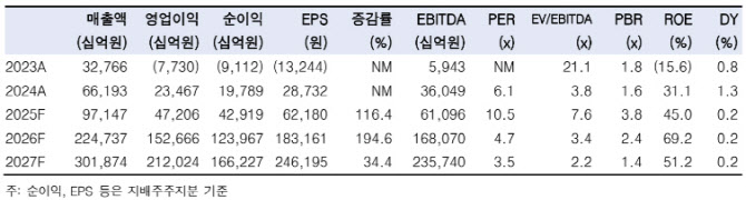 채 연구원은 2026년 1분기 메모리 ASP가 기존 추정치를 상회할 가능성이 높다고 판단해 DRAM과 NAND ASP 전망을 상향 조정했다. 이에 따라 2026년 연간 영업이익 추정치는 기존 대비 20% 상향한 153조원으로 제시됐다. 채 연구원은 “공급 부족에 따른 ASP 상승과 이익 추정치 상향 흐름이 상당 기간 지속될 것”이라며 “2026~2029년 평균 ROE가 35% 이상으로 추정되는 점을 감안해 섹터 내 톱픽(Top pick) 의견을 유지한다”고 밝혔다.