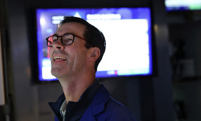 뉴욕증권거래소에서 한 트레이더가 환화게 웃고 있다. (사진=AFP)