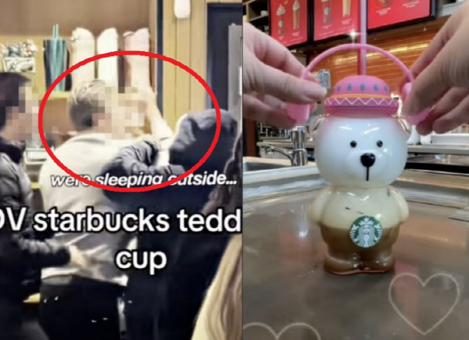미국 스타벅스가 출시한 베어리스타 콜드컵이 큰 인기를 누리면서 이로 인해 난투극(사진 왼쪽)이 벌어지는 등 소동을 빚고 있다. 컵을 사는 데 성공한 이들은 자신이 원하는대로 컵을 꾸미는 모습(오른쪽)을 영상으로 올리기도 했다. (사진=틱톡 캡처)