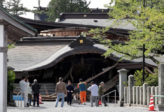 2016년 구마모토현 지진 당시 붕괴된 아소지역의 한 신사 모습.(사진=AFPBBNews)