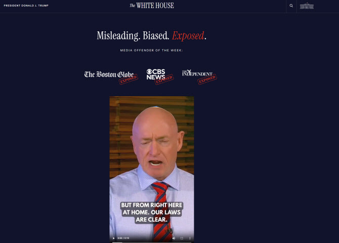 웹페이지 내 ‘미디어 범죄자’(Media Offenders) 화면에 들어가 보면 상단에 ‘오도. 편향. 폭로.’라는 문구가 적혀 있다. 보스턴 글로브, CBS 뉴스, 인디펜던트 등 언론사를 ‘이번 주의 미디어 범죄자’로 지목하며 트럼프 대통령의 발언을 왜곡했다고 주장했다.