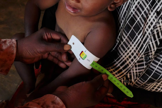 마다가스카르에서 측정된 아이 팔 둘레. (사진=AFP)