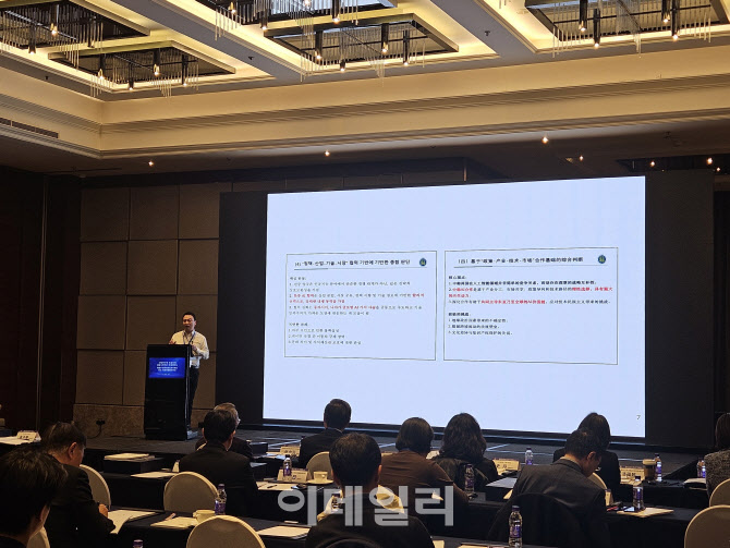 [이데일리 이명철 특파원]후원룽 중국사회과학원 공업경제연구소 부연구원이 11일 오후 베이징 켐핀스키호텔에서 열린 ‘산업연구원 북경지원 설립 20주년 국제세미나’ 기조 강연하고 있다.