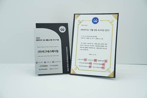 2025 대한민국 일·생활 균형 우수기업 상장. (이미지=아그네스메디컬)