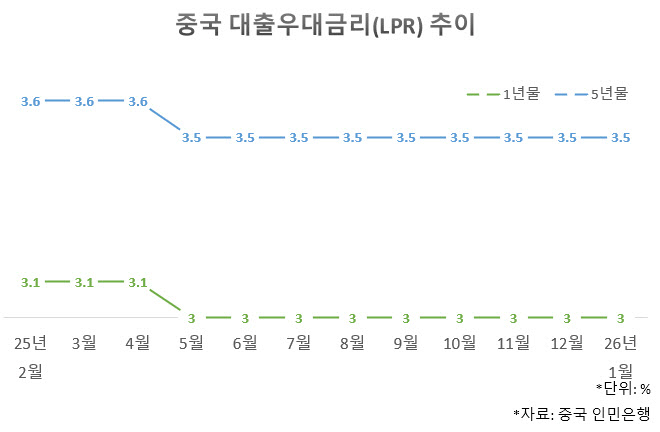 ‘사실상 기준금리’로 취급되는 중국의 LPR은 매월 20개 주요 상업은행의 금리를 취합해 산출한다. 통상 1년물은 신용 대출 등 일반 대출, 5년물은 주택담보대출 등 금리 산정의 기준이 된다.
