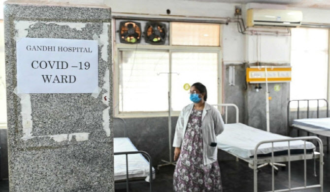 지난 2025년 5월 24일 인도 남부 텔랑가나주의 한 정부병원에 마련된 코로나19 환자 병동을 한 의사가 살펴보고 있다.(사진=AFP 연합뉴스)
