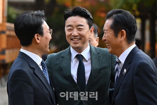 김민석 국무총리(왼쪽)와 정청래 더불어민주당 대표(오른쪽), 강훈식 대통령비서실장이 9일 서울 종로구 총리 공관에서 열린 고위당정협의회에서 환담을 나누고 있다. (사진=방인권 기자)
