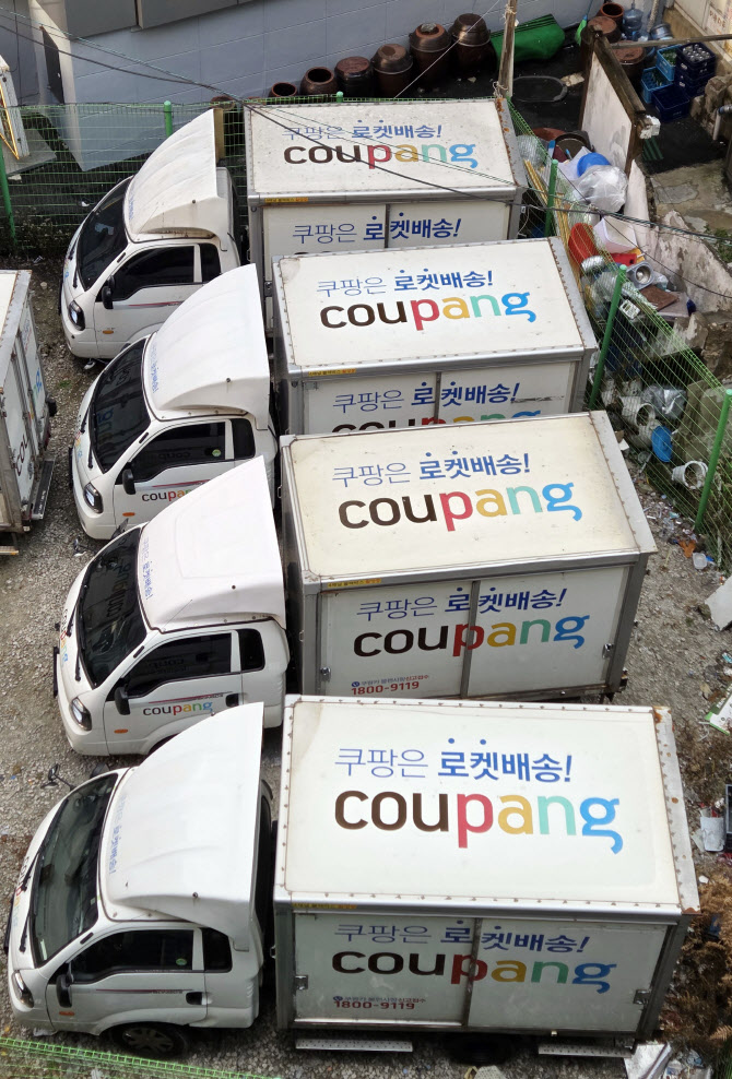 서울의 한 쿠팡 차고지에 배송 트럭들이 주차돼 있다.(사진=연합뉴스)