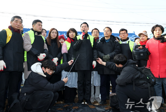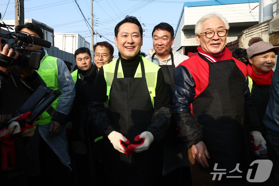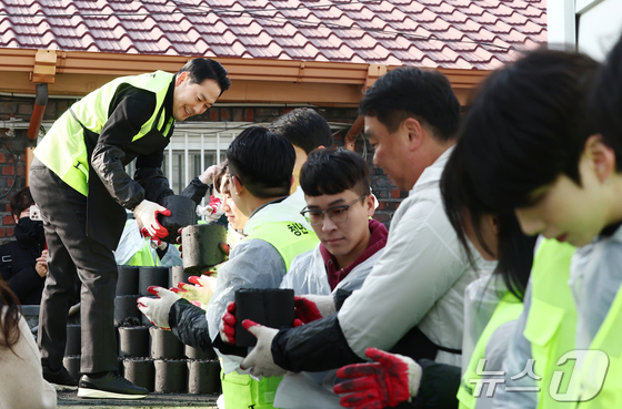 장동혁 국민의힘 대표가 17일 연말을 맞아 지도부와 함께 연탄봉사에 나섰다.