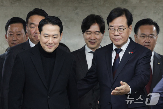 송 원내대표는 이날 오전 개혁신당과의 통일교 특검 발의 논의 진전 상황을 두고는 "특검을 발의하고 꼭 해야 한다는 기본 방침에는 전적으로 동의했다"며 "특검 추천을 어떻게 할 것인지, 누가 할 것인지에 대해 이견이 남아있긴 하지만 큰 틀에서 합의가 어느 정도 가능한 수준이라 생각한다. 다음 주 초 특검법을 발의할 수 있는 상태까지 가보자고 얘기가 되고 있다"고 전했다.